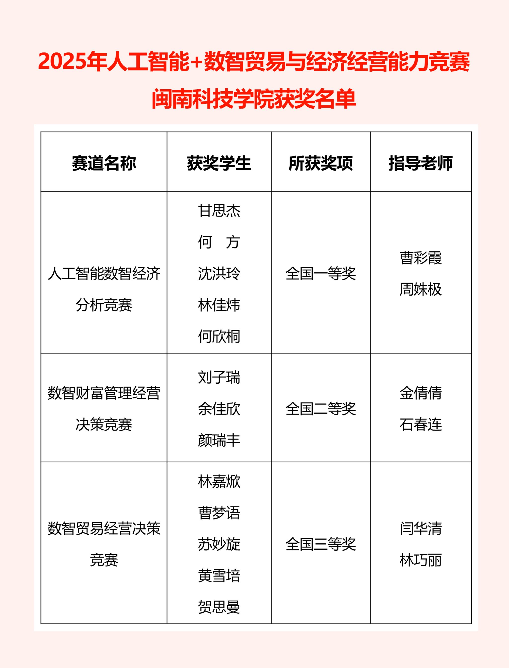 自大赛启动以来,我院统筹部署赛事,组建骨干教师指导团队开展专项训练,提供全流程指导,为参赛学生高水平发挥提供了有力支撑。比赛中,参赛团队凭借扎实的专业功底与出色的综合表现,在全国赛场脱颖而出取得佳绩,为学校争得荣誉。